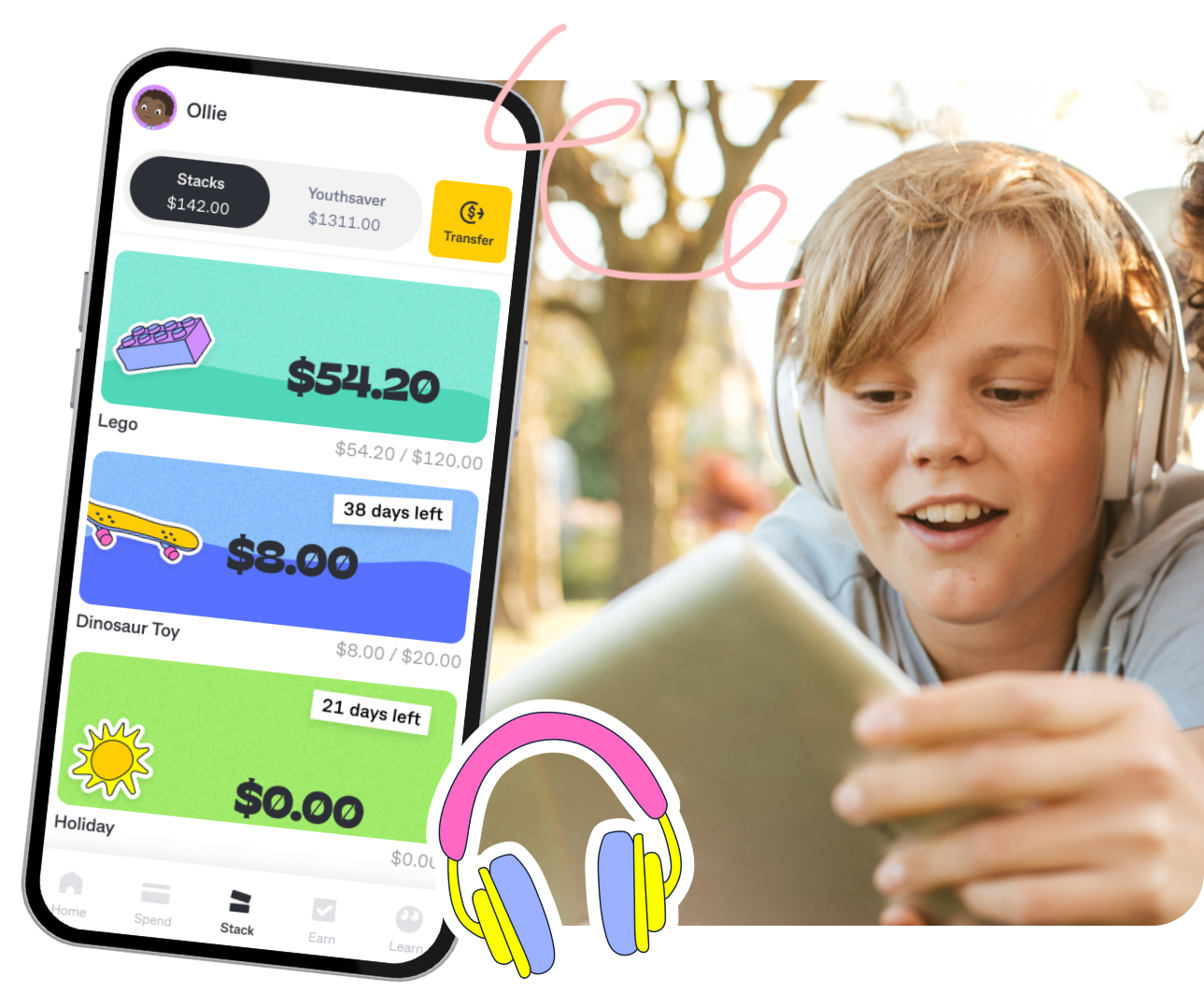 The core app functionality in Kit has been designed based on an independent review of research evidence about digital tools. Features like just-in-time 'nudges' and goal visualisation drive positive financial behaviours to build healthy financial habits in your child from an early age.